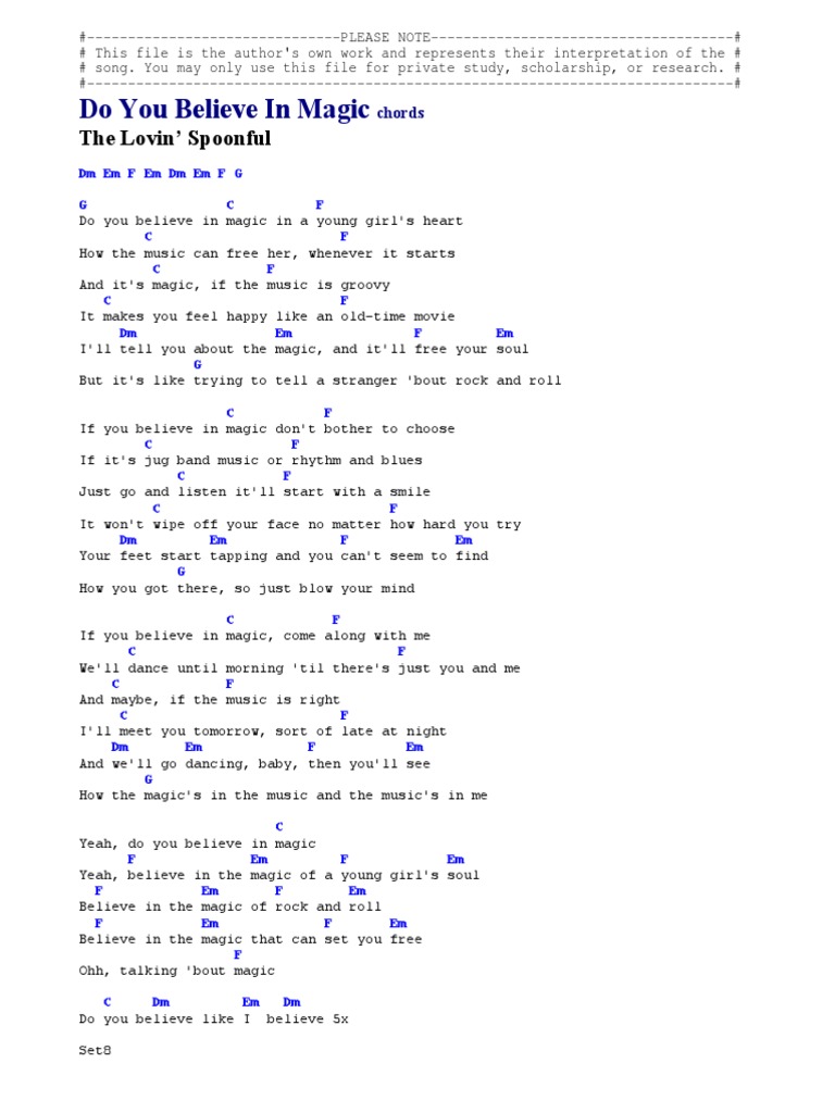Do You Believe In Magic Ukulele Chords Lyrics Print Sheet Music